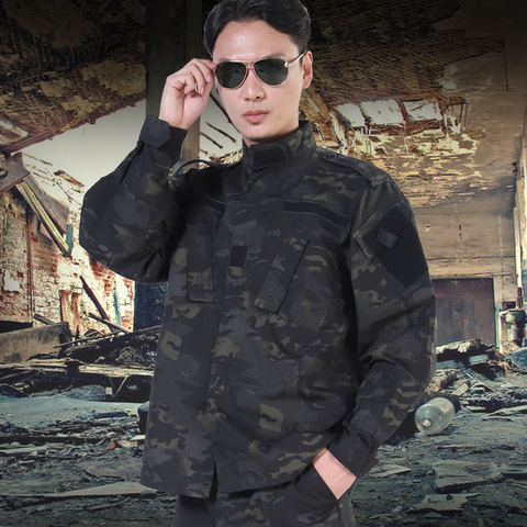 Traje de camuflaje negro CP manga larga camuflaje táctico entrenamiento al aire libre ropa táctica a prueba de viento